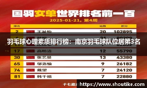 羽毛球心理素质排行榜:南京羽毛球队位居第3名